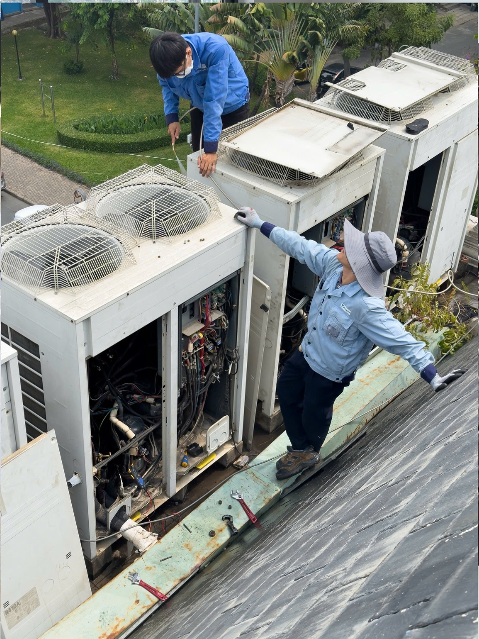 Vệ sinh dàn lạnh: Bao gồm làm sạch các bộ phận bên trong dàn lạnh như quạt, bộ lọc,Kiểm tra tổng thể: Kiểm tra các bộ phận khác như ống dẫn, dây điện và lượng gas.